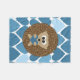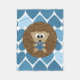 Cute round hedgehog carrying a blue heart with blue hearts in the background