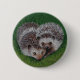 Two hedgehogs cuddling in a heart shape on a grassy background.