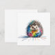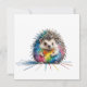 A friendly hedgehog in colorful colors, a childish drawing of a hedgehog, with shells and chalk, spiced and decorated is the colors as style and effect of the funny image.