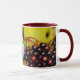 Everyday fine art mug featuring autumn fruits: wild plums, blackberries, elderberries and rose-hips. "Fruit from the Hedgerow" print is taken from original artwork on hot press paper in watercolor by Sarah Trett for www.mylittleeden.com