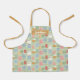 Great color and even though I ordered the kid size, it covers well enough to use during the holidays. I am not a big woman and prefer a shorter apron. I stand 5"6" and the length of the garment goes to mid-thigh. The tie straps fit well at my waist and even though there is no neck strap adjustment, the opening is plenty big enough. I am happy with the size and fit. I am sharing my apron with my 10 year old grandson, too! The color is vibrant and looks good, as shown on the website. The stitching looks strong and reinforced. Photographed is front side and back side of the apron, reinforced straps and coloring. My phone camera may not be the best at showing the details.