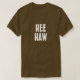 My 11 yo wore adult XL (5’7” 165#). The 8yo is small framed. She wore adult small and tied it in the back. Grandma wore adult large with long sleeve shirt underneath. Tall girl adult medium. Dark haired male adult large. Good quality dark Heather gray, Gildan brand shirt. -it was next up from basic choice and cost about $20 per shirt. Not too thick or thin. Washed and dried well, no major shrinkage. Not see-through. Can wear a bra under it fine. Screen print is just as shown and well done, front and back.