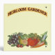 Heirloom Gardener gardening saying for vintage fruit and vegetable seed savers and growers. In retro letters with grapes, pear,tomato, carrots and corn.