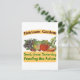 Heirloom Gardens Seed of Yesterday, Feeding the Future gardener saying for vintage fruit and vegetable seed savers and growers. In retro and futuristic letters with grapes, pear,tomato, carrots and corn.