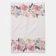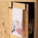 Heirloom peonies kitchen towel with pink background.