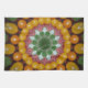 This dish towel features a kaleidoscope arrangement of red, yellow, and orange heirloom tomatoes with cucumbers and parsley.