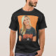 My 11 yo wore adult XL (5’7” 165#). The 8yo is small framed. She wore adult small and tied it in the back. Grandma wore adult large with long sleeve shirt underneath. Tall girl adult medium. Dark haired male adult large. Good quality dark Heather gray, Gildan brand shirt. -it was next up from basic choice and cost about $20 per shirt. Not too thick or thin. Washed and dried well, no major shrinkage. Not see-through. Can wear a bra under it fine. Screen print is just as shown and well done, front and back.
