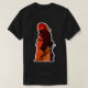 My 11 yo wore adult XL (5’7” 165#). The 8yo is small framed. She wore adult small and tied it in the back. Grandma wore adult large with long sleeve shirt underneath. Tall girl adult medium. Dark haired male adult large. Good quality dark Heather gray, Gildan brand shirt. -it was next up from basic choice and cost about $20 per shirt. Not too thick or thin. Washed and dried well, no major shrinkage. Not see-through. Can wear a bra under it fine. Screen print is just as shown and well done, front and back.