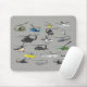 A grey mouse pad featuring multiple helicopters of various design for aviation enthusiasts.