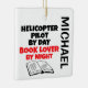 This is a unique ornament featuring the quote "Helicopter Pilot by Day Book Lover by Night", perfect for any helicopter pilot that loves to read.