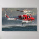 A red & white Fire rescue Helicopter getting water from the lake makes a nice poster
