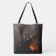 Hell Cat Tote Bag. © Dark Heart Desires. A gothic tote bag with a firey cat or Hellcat on it.