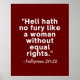 Make a bold statement with this protest poster featuring the powerful words: “Hell hath no fury like a woman without equal rights.” Styled as a witty, sarcastic “Fallopians 20:22” quote, the striking white text set against a bold red background delivers a clear and unapologetic message. Perfect for rallies, marches, dorm rooms, or offices, this design is an empowering reminder to stand up for equality and women’s rights.