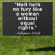 Yard sign design with sarcastic protest quote to the overturning of Roe v. Wade. ""Hell hath no fury like a woman without equal rights." - Fallopians 20:22 White text on black background