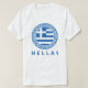 Hellas men's white distressed design T-Shirt featuring the national flag of Greece inside a Greek blue Aztec circle. This T-Shirt is ideal if you are Greek or to wear while you are enjoying your vacation in Greece. You can also give this as a gift from Greece to anyone who will like this T-Shirt.
