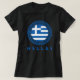 Hellas women's black T-Shirt featuring the national flag of Greece inside a Greek blue Aztec circle. This T-Shirt is ideal if you are Greek or to wear while you are enjoying your vacation in Greece. You can also give this as a gift from Greece to anyone who will like this T-Shirt.