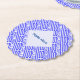 Design on paper coaster features the Greek flag and the word, HELLAS, below in blue, tiled diagonally for an artistic look. The flag shows blue and white stripes with a blue and white cross in the upper right area. A white fractal of squiggly squares holds a spot for your name, in blue letters, to personalize these coasters for your party or family reunion. And, for celebrating Oxi Day.