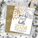Hello 2025 Gold Glitter Festive Fireworks New Year Holiday Card