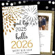 Good Bye 2025 Hello 2026 | Gold Glitter Festive Fireworks Happy New Year Photo Holiday Card. Send holiday warm wishes and greetings to your loved ones with this beautiful New Year card. All the texts are pre-arranged for you to personalize easily and quickly with your own details. Wish you all a Happy Holidays and an Amazing New Year!