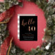Celebrate her milestone birthday with these festive party invitations featuring "hello [age]" in rose gold foil lettering on a rich black background. Personalize with your party details beneath. Example shown for a 40th birthday.