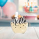 Add a personal and polished touch to your 70th birthday celebration with the Stemless Wine Glass featuring a bold "Hello" on one side and "70" on the back side with black and white polka dots, and a photo of the guest of honor. Personalize with a name and photo to make your milestone event truly unforgettable. Change the photo and the 7 to make it 30, 40, 50, 60, etc.