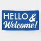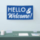 Hello and Welcome event banner in your choice of color: both the text color and background color can be changed if you like.