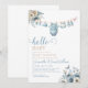 Hello Baby Blue Flower Butterfly Baby Shower Invitation