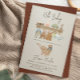 Celebrate the joy of impending parenthood with our rustic neutral bohemian baby shower invitation, adorned with delightful nursery illustrations. From charming bassinets and baby carts to sweet baby clothes, teddy bears, soft toys, and wooden playthings, this invitation captures the essence of anticipation. The watercolor design in natural earth tones and muted colors adds a touch of warmth, creating an inviting and whimsical atmosphere for your baby shower celebration.
