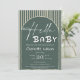 Hello Baby Dark Green Stripes Baby Shower Invitation