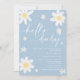 Hello Baby Dusty Blue Daisy Baby Shower Invitation