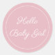 A simple cute "hello baby girl" gift sticker for a new baby gift. Text in script font.