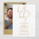 Hello Baby Gold Script Heart Photo Baby Shower Invitation