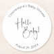 Hello Baby Modern Script Baby Shower Round Paper Coaster