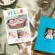 "Hello" cute and color baby birth announcement card with 4 photos.