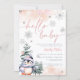 Hello Baby, Winter Penguin baby shower pink Invitation
