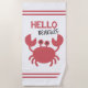 NewParkLane _ Cute beach towel, with a big red crab cartoon and funny quote ' Hello Beaches' in a fun bold handwritten typography.