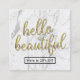 Hello Beautiful 3D Gold Script White Marble Beauty Salon Referral Business Cards.