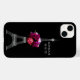 This elegant and dramatic iphone case features the Eiffell Tower in glittering silver with a bow of pink and purple peonies. The words in French are Bonjour beauté, translating to Hello Beautiful. You can change the words to your name or another saying.
