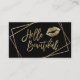 A modern, stylish custom name beauty business card with modern hand lettering style elegant brush typography saying Hello beautiful in faux yellow gold foil with gold lips on a geometric faux rose gold doubles stripes frame on customizable black.. If you need any customization, don't hesitate in contacting me