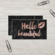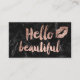 A modern, stylish custom name beauty business card with lips and modern hand lettering style brush typography saying Hello beautiful in faux rose gold foil on a trendy and elegant black marble background. If you need any customization, don't hesitate in contacting me