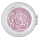 The product design features a simple large rose illustration in retro pink and white. This elegant botanic design makes a modern and unique round compact mirror with personalized text. Gift idea for her birthday, wedding bridesmaids, Mother’s Day, and more!