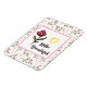 Flex magnet with a square frame and a pink border, inside it says "Hello Beautiful" written in a trendy font with a doodled yellow sun above the text. Also a pretty pink, long stem flower with green leaves off to the side. The backdrop is a seamless pattern with hand drawn pink wildflowers with long green stems and leaves on a eggshell white colored background. Pink circles and sprigs also decorate the design. Cute and pretty floral design.