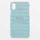 Hello Beautiful Quote Boho Striped Pattern on iPhone XR Case. Bohemian Hello Beautiful Quote Striped Pattern On iPhone XR Case. Typography with teal blue and stripes. Design by Bohemian Girl.