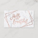 A modern, stylish custom name beauty business card with modern hand lettering style elegant brush typography saying Hello beautiful in faux rose gold foil on a geometric faux rose gold doubles stripes frame ona modern white marble background. If you need any customization, don't hesitate in contacting me