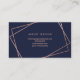 A modern, stylish custom name beauty business card with modern hand lettering style elegant brush typography saying Hello beautiful in faux rose gold foil on a geometric faux rose gold doubles stripes frame on a modern navy blue background. If you need any customization, don't hesitate in contacting me