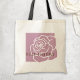 The product design features a large rose illustration in retro pink and white. This elegant botanic design makes a simple modern and unique tote bag with personalized text. Gift idea for her birthday, wedding bridesmaid, Mother’s Day, and more!