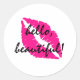 Hello Beautiful with Pink Lipstick Classic Round Sticker
