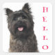 This cute Hello canine sticker features an image of a happy Cairn Terrier pup sticking her tongue out in greeting highlighted against a creamy white background.