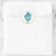 Friendly blue shaggy furry monster greets you with a big hello. Click on “Personalize this template” to add a name. Choose from square or round stickers and matte or glossy finish.