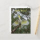 Wave hello or welcome someone with open arms.. ehh wings with this beautiful, personalised postcard featuring a close up image of a gorgeous sulphur-crested cockatoo spreading its wings on a tree. Personalise the card with your own text to make it even more special! The raucous screech of the Sulfur-crested Cockatoo can be heard in many parts of eastern and northern Australia. A flock of hundreds of snow-white birds with pale-yellow crests can be a spectacular sight when seen in the distance, but up close their calls can be deafening. Being a gregarious species, these cockatoos usually spend much time in flocks, foraging together on the ground (often with a few perched in nearby trees keeping a lookout for any sign of danger) or roosting together in trees. The Sulfur-crested Cockatoo is a large white parrot. It has a dark gray-black bill, a distinctive sulfur-yellow crest and a yellow wash on the underside of the wings. Sexes are similar, although the female can be separated at close range by its red-brown eye (darker brown in the male). This is a noisy and conspicuous cockatoo, both at rest and in flight. This amazing photo was taken in a nature reserve near Adelaide in South Australia.